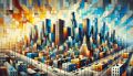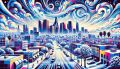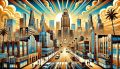 Vibrant Decopunk Artwork of Los Angeles' Iconic Modern Skyline