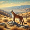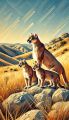 Majestic Mountain Lion Family Overlooking a Harmonic Landscape