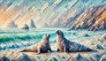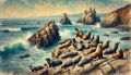 Geometric Glory: Northern Elephant Seals in a Cubist Coastal Landscape