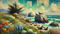 Coastal Serenity: Sea Lions Amidst Blooming Spring Flowers