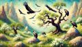 Enchanted Vista of Redwood Forest with Whimsical Sky and Wildlife