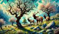Geometric Harmony: A Cubist Vision of Tule Elk and Calves Amidst Nature