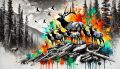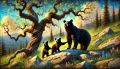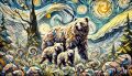 Cubist Wilderness: A Grizzly Bear and Cubs Amidst Surreal Vistas