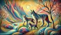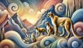 A Cubist Autumn Symphony: Coyote Family Amidst Vibrant Foliage