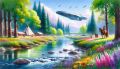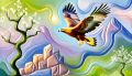 Vibrant Pop Art Landscape of Lake Tahoe with Soaring Eagle