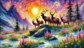 Majestic Elk Gather Amid Vibrant Sunset in Surreal Landscape