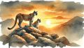 Majestic Mountain Lions Overlooking a Golden Sunset on Rocky Peaks
