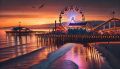 Sunset Radiance at Santa Monica Pier with Vibrant Ferris Wheel Lights