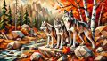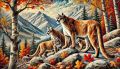 Autumn Sentinel: A Cubist Perspective on a Gray Wolf Family in the Wild
