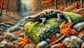 Cubist California Newt Amidst Autumn Leaves and Frosted Streams