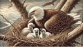Majestic Bald Eagle Watches Over Chicks in Scenic Nest