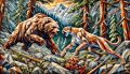 Cubist-Inspired Winter Dreamscape Featuring California Grizzly Bear Family