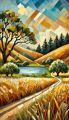 Vibrant Cubism Masterpiece Depicting the Russian River Valley Landscape