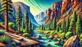 Vibrant Splendor of Yosemite: A Cubist-Inspired Artistic Exploration