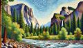 Vibrant Pointillism of Yosemite National Park in Summer Hues