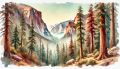 Enchanting Watercolor of Sequoia and Kings Canyon National Parks