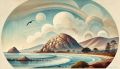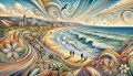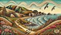 Whimsical Waves and Rolling Hills: A Cubist-Inspired Seascape