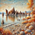 Surreal Illustration of Mono Lake Tufa Formations Under Pastel Skies