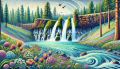 Enchanting Watercolor of McArthur-Burney Falls Amongst Flourishing Flora