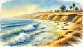 Captivating Watercolor Illustration of Carlsbad State Beach in Summer