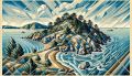 Stylized Artistic Representation of Angel Island and Golden Gate Bridge