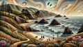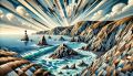A Stylized Vista of Sonoma Coast State Park Under Whirling Skies