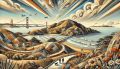 Cubist-Inspired Southern Sea Lion Amidst Rugged Coastal Terrain