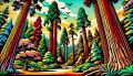 Vibrant Pop Art of Muir Woods: A Kaleidoscope of Nature's Majesty