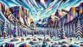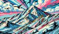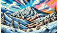 Vibrant Pop Art Interpretation of Mount Baldy During Winter
