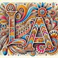 Colorful Artistic Representation of LA in Heart-Shaped Illustration