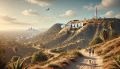 Surreal Sunset Over the Iconic Hollywood Hills: An Abstract Perspective