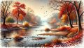 Autumn Whispers by the Sacramento River: A Serene Watercolor Scene