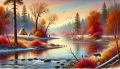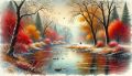 Autumn Whispers by the San Joaquin River: A Serene Watercolor Landscape