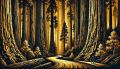 Enigmatic Golden Hues of Redwood Forests in Stylized Art Form