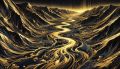 Majestic Gold and Black Rivers Flowing Through Textured Mountain Ranges